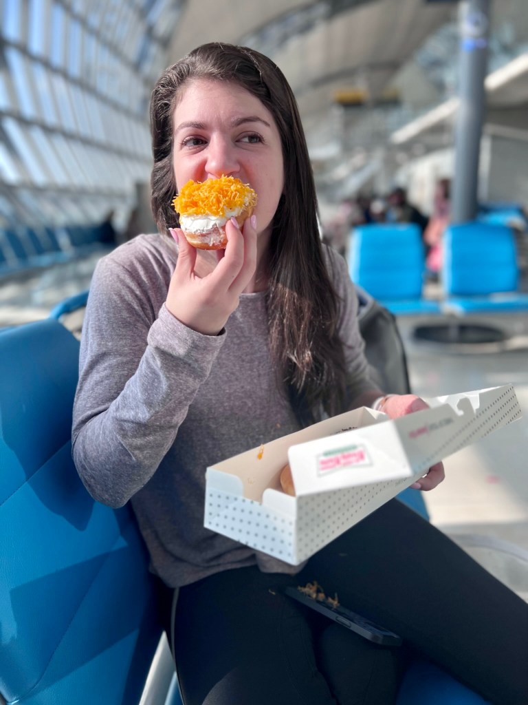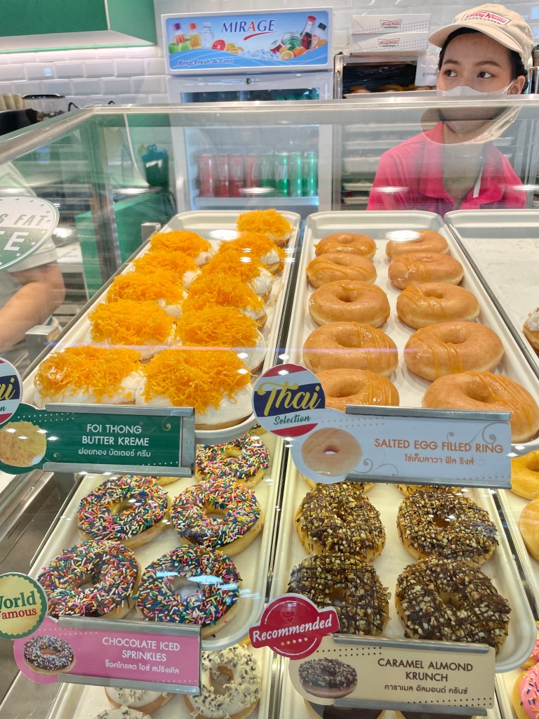 The day started off heading to the airport at 7:30am to travel from Bangkok to Chiang Mai. After checking in a dropping off bags, Alex and Chrissy saw Krispy Kreme donuts and had to get some for a snack before the place as Alex has never had them before. The airport was interesting because you first go through a spot where they check your ticket and passport and then walk through the airport food courts and shops for 10 minutes before you get to the security checkpoint. Alex got her favorite food bond lotion confiscated at the checkpoint but the krispy crème donuts made up for the sadness of that loss.