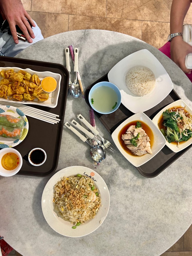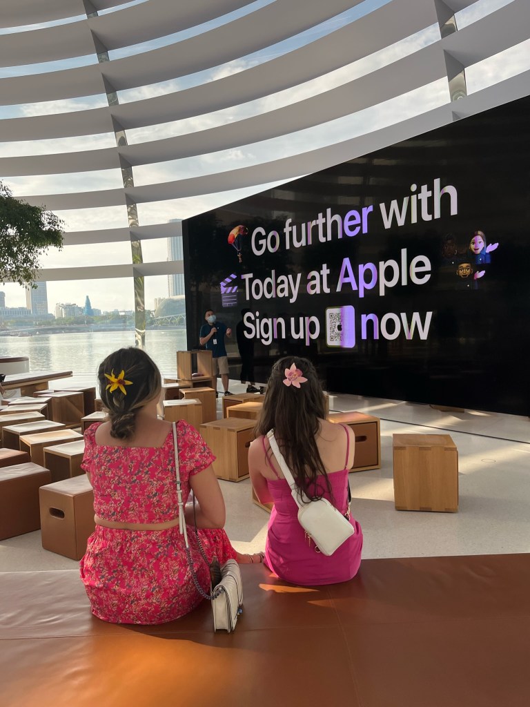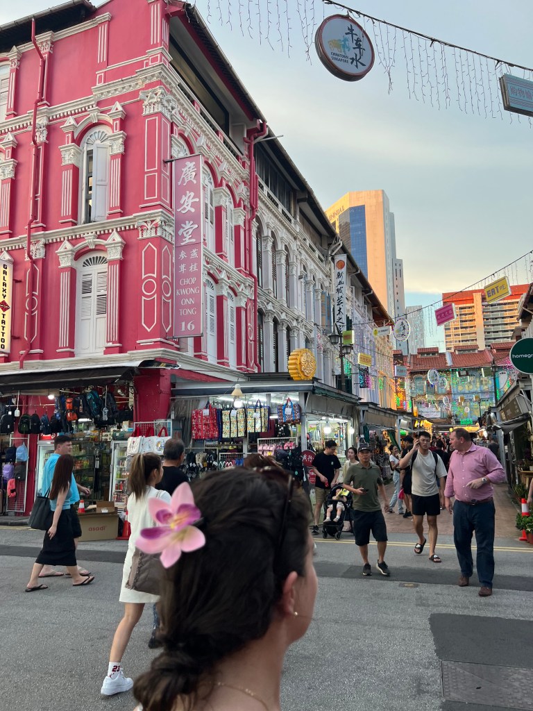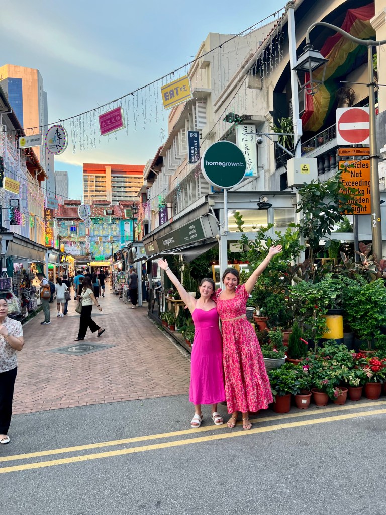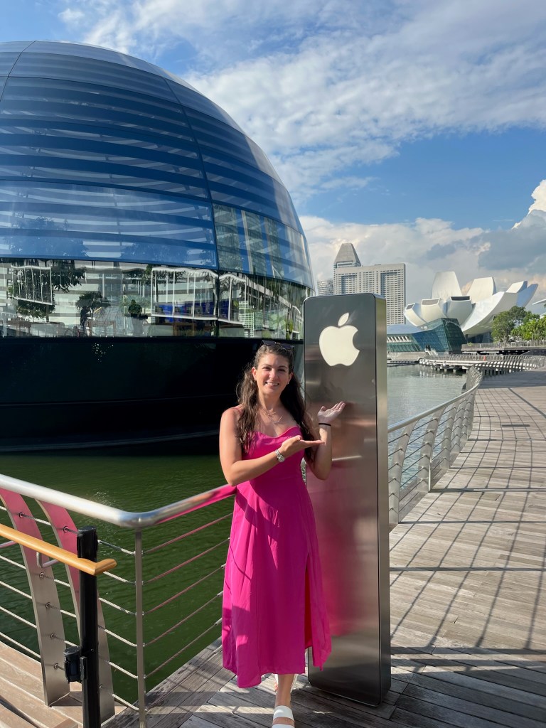 From the gardens by the bay, the group made their way to a Hawker center for food, taking a quick pit stop at the most interesting Apple Store Alex had ever seen. The friends got then contributed their walk to Lau Pa Sat and got a range of foods. A Hawker center like this reminds me of a larger, more ethnic, and circular version of Faneuil hall in Boston. At the starts of each hallway at the center of the circle, there is a picture of what the market looked like in the last. Alex and Chrissy feasted on chicken and rice, friend rice, friend dumplings. Following food, they explored Chinatown, and even got to try a Dorian! This is a fruit that can be banned in hotels and even ok subways because it is so smelly. China town overall was very cute, and it was nice to walk though a street where people didn’t keep coming up to you trying to buy fake bags.