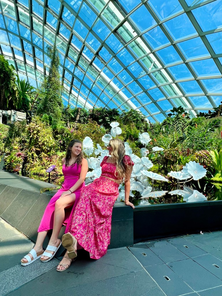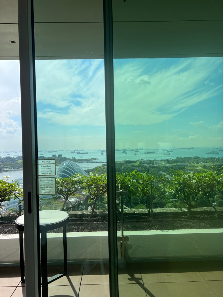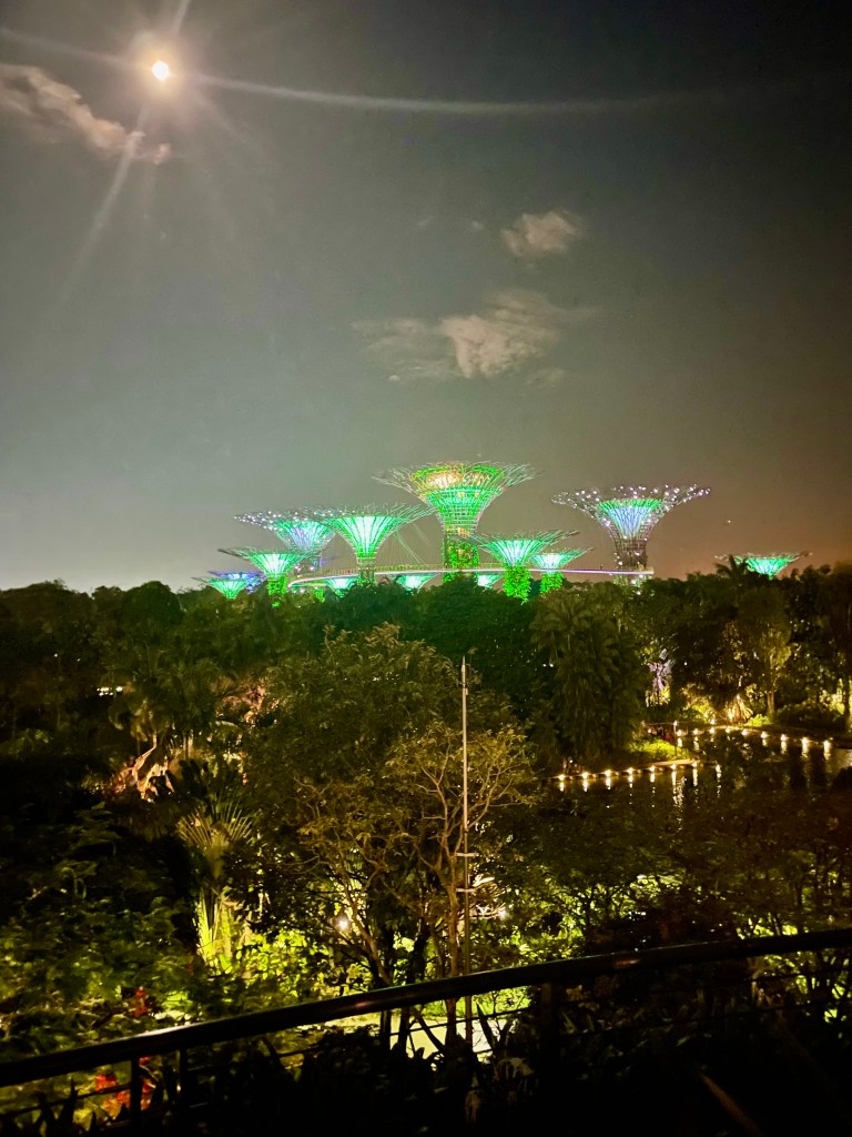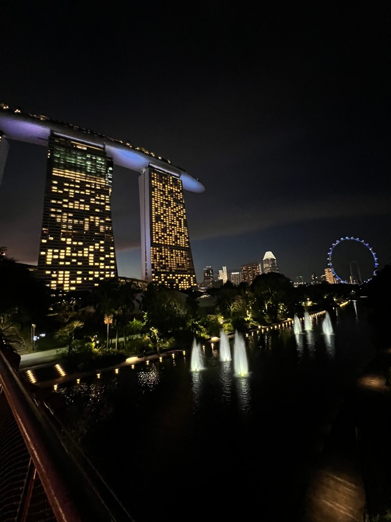 After successfully navigating the subway (that you to the boston T and NYC MBTA) Alex an Chrissy arrived at the Marina Bay Sands. If you have ever seen Crazy Rich Asians and been in awe of the hotel at the end with the rooftop pool, this is that hotel. After a long line and Chrissy’s luck, the girls entered their complimentary upgraded hotel room. Much of the excitement of being in the hotel was turned into shock when the they realized they were walking into a corner hotel room on tower 3. The shock and awe would be hilarious to have filmed because neither Alex nor Chrissy had ever stayed in a room this nice, and may not ever again unless one of them becomes a billionaire. Their room had a foyer, walk in closet, living room separated by a tv/ dresser with a bedroom, a balcony with two entrances overlooking the marina bay garden, and a master bathroom with two sinks, siloed shower and toilet, and lastly a beautiful tub in front of a floor to ceiling window overlooking the city of Singapore.