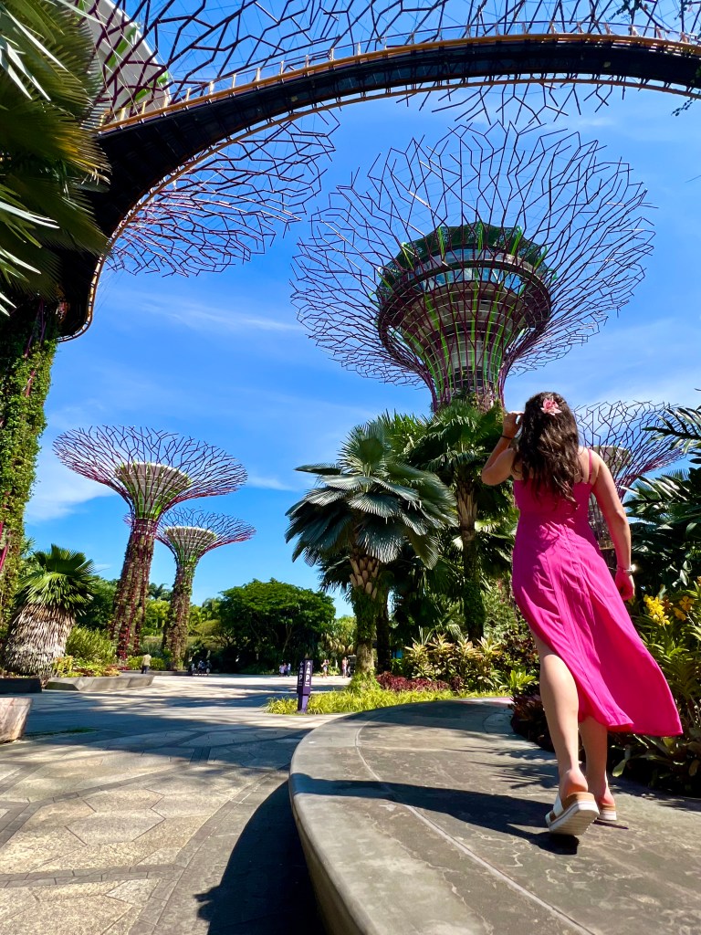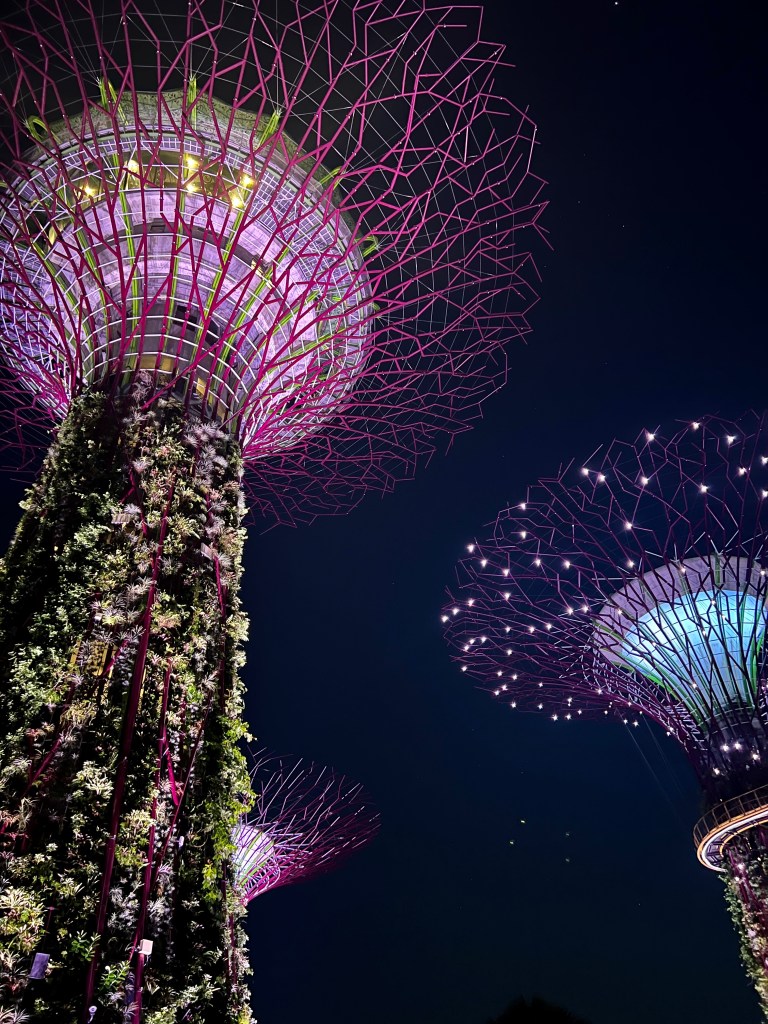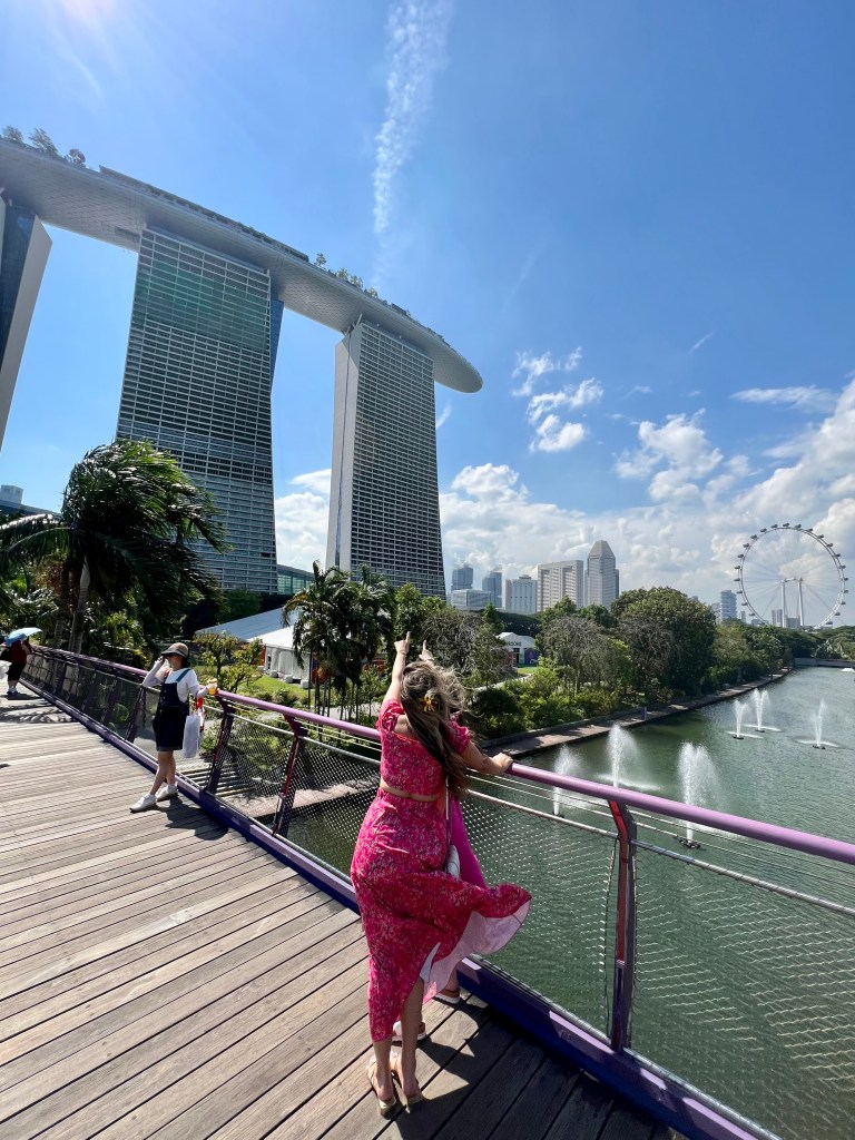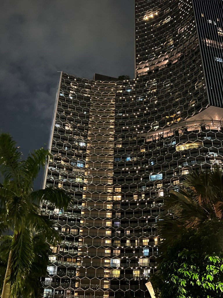 After successfully navigating the subway (that you to the boston T and NYC MBTA) Alex an Chrissy arrived at the Marina Bay Sands. If you have ever seen Crazy Rich Asians and been in awe of the hotel at the end with the rooftop pool, this is that hotel. After a long line and Chrissy’s luck, the girls entered their complimentary upgraded hotel room. Much of the excitement of being in the hotel was turned into shock when the they realized they were walking into a corner hotel room on tower 3. The shock and awe would be hilarious to have filmed because neither Alex nor Chrissy had ever stayed in a room this nice, and may not ever again unless one of them becomes a billionaire. Their room had a foyer, walk in closet, living room separated by a tv/ dresser with a bedroom, a balcony with two entrances overlooking the marina bay garden, and a master bathroom with two sinks, siloed shower and toilet, and lastly a beautiful tub in front of a floor to ceiling window overlooking the city of Singapore.